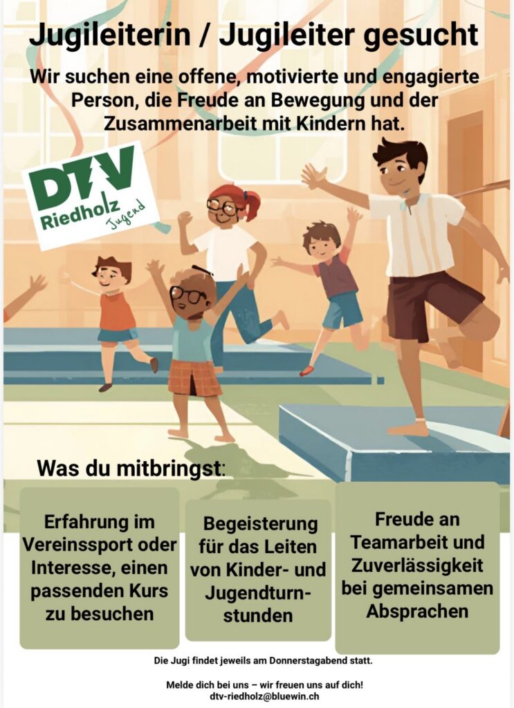 Fühlst du dich angesprochen? Melde dich per Mail an dtv-riedholz@bluewin.ch